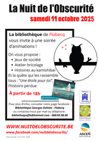 La bibliothèque de Flobecq vous invite à une soirée d’animations ! On vous propose : des jeux de société, un atelier bricolage, des histoires au kamishibaï, une activité découverte des chauves souris et la quête qui les rassemble tous : «Une étoile pour toi», l’histoire perdue (un album de Katie Cotton et Miren Asiain Lora publié chez De La Martinière Jeunesse).